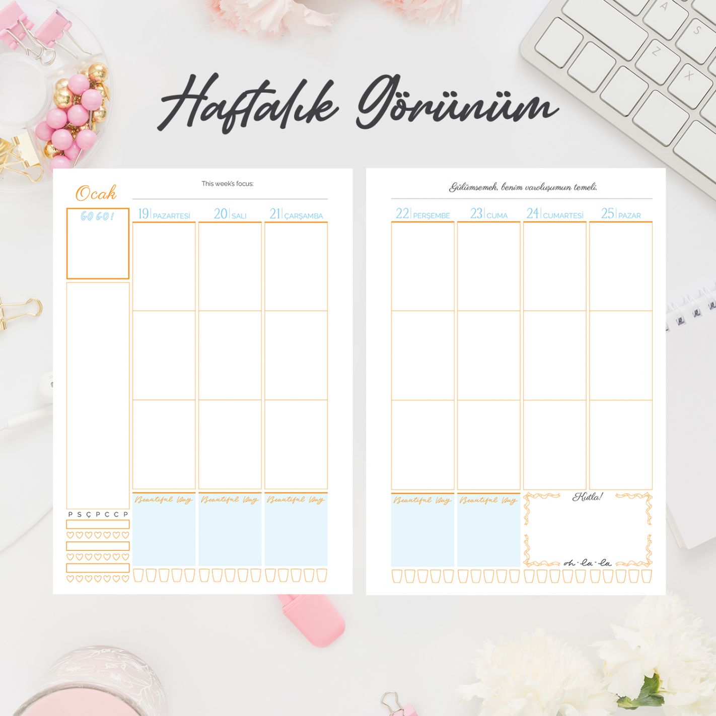 Olumlamalı Haftalık Plan Sayfaları